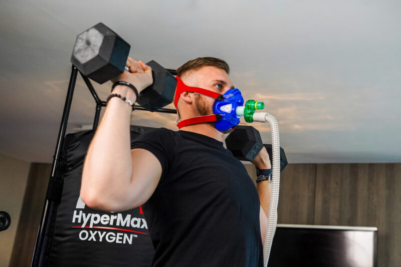 You’ll start by strapping on an oxygen mask which feeds 93% oxygen air into your body as you breathe while simultaneously blocking room air from entering your lungs and filtering out CO2 as you exhale. When ready, you’ll then do some light exercise to get the blood pumping and allow your cells to soak in all the new oxygen being inhaled.